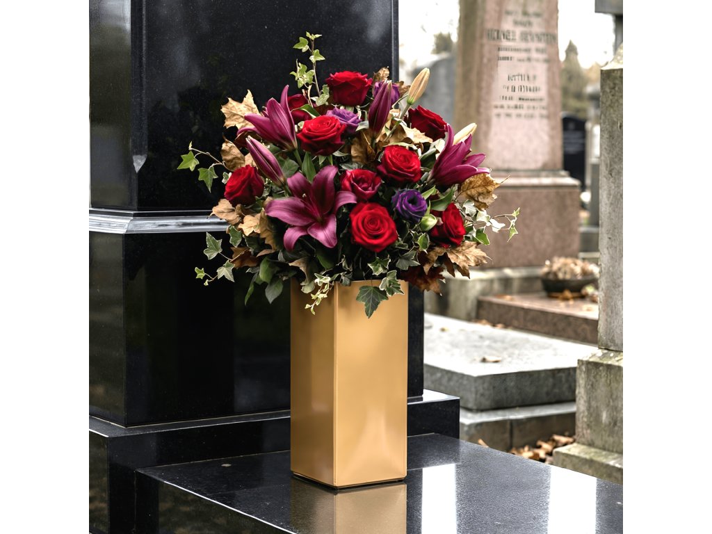 Tento luxusný solitér je navrhnutý pre modernú architektúru náhrobných kameňov. Vďaka svojmu hranatému dizajnu a čistým líniám dokonale vynikne najmä v kombinácii s tmavými kameňmi a minimalistickým dizajnom pomníkov.