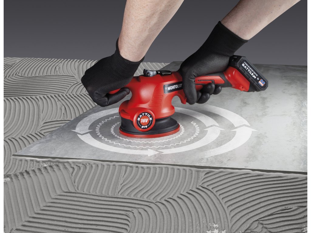 BATTILE PRO vytvára vibrácie, ktoré je možné podľa potreby regulovať. Vibrácie sa prenášajú na dlaždicu položenú v lepidle a chvením dlaždice dochádza k vytláčaniu vzduchových bublín a následne k dokonalému priľnutiu dlaždice k lepidlu.