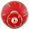 Diamantový rezný + brúsny kotúč určený na prácu za sucha. Bočné diamantové zuby sú vhodné na brúsenie / tvarovanie kameňa.  Duralová príruba M14 umožňuje pracovať s celou plochou kotúča - nevyčnieva závit zo stroja.